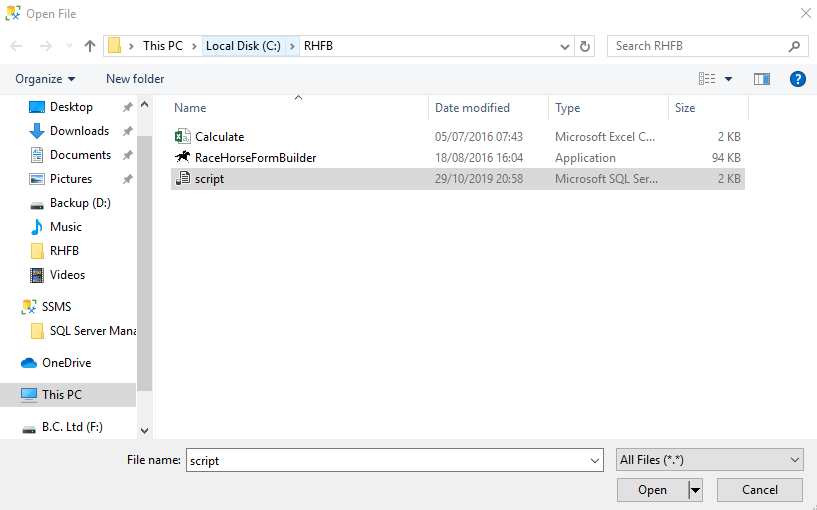 Then copy the RaceHorseFormBuilder.exe, Calculate.csv, ServerConfig.txt and Create.sql into the folder.